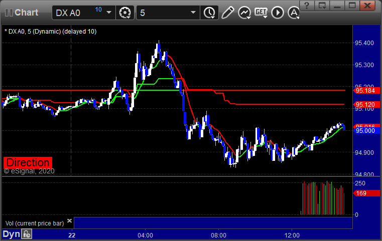 Here’s a look at the US Dollar Index intraday with our market directional lines: