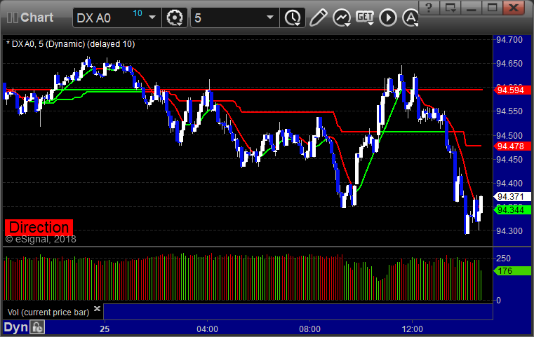 Here’s a look at the US Dollar Index intraday with our market directional lines: