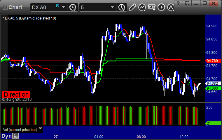 Here’s a look at the US Dollar Index intraday with our market directional lines:
