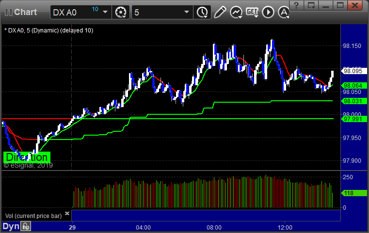 Here’s a look at the US Dollar Index intraday with our market directional lines: