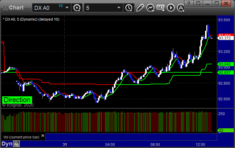 Here’s a look at the US Dollar Index intraday with our market directional lines:
