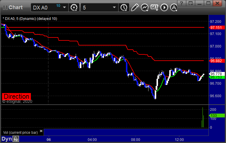Here’s a look at the US Dollar Index intraday with our market directional lines: