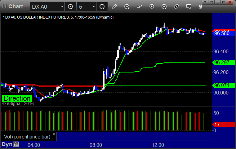 Here’s a look at the US Dollar Index intraday with our market directional lines: