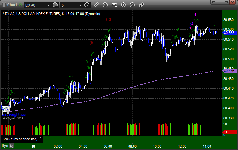 Here’s a look at the US Dollar Index intraday with our market directional lines: