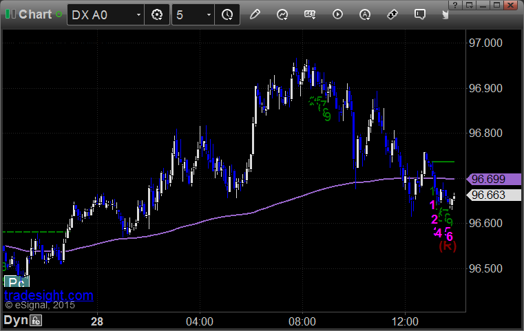 Here’s a look at the US Dollar Index intraday with our market directional lines: