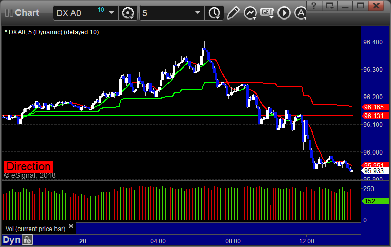 Another dead summer session. See EURUSD section below. Here’s a look at the US Dollar Index intraday with our market directional lines: EURUSD: Triggered short at A and stopped: PrevNext