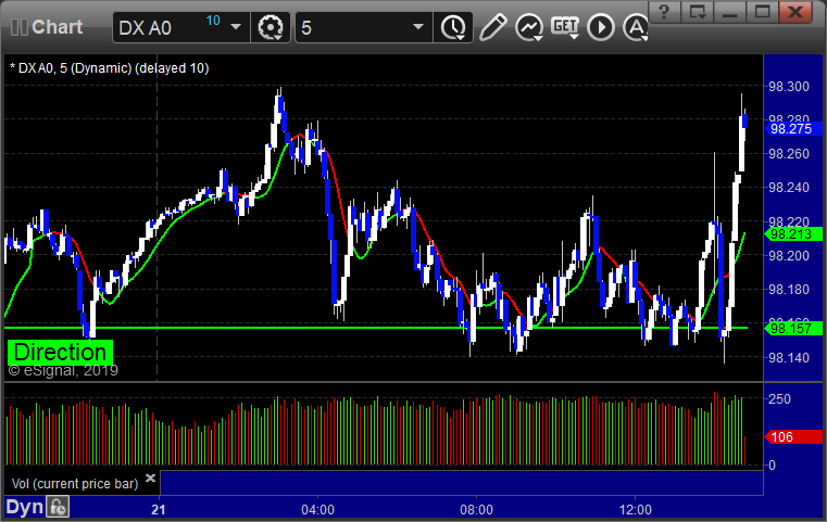 Here’s a look at the US Dollar Index intraday with our market directional lines: