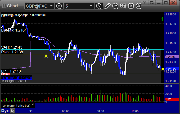 Triggered short at A and closed at B for end of session after it never hit stop or first target: