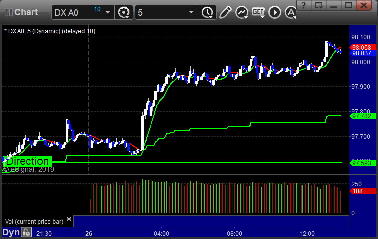 Here’s a look at the US Dollar Index intraday with our market directional lines: