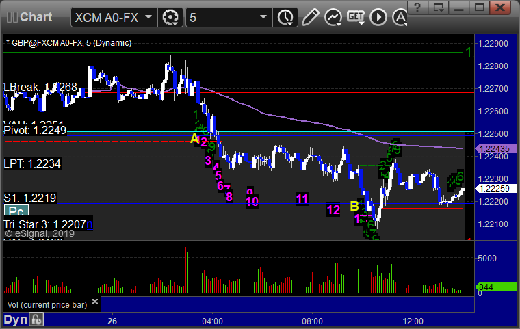 Triggered short at A, hit first target at B, still holding second half with a stop over the Pivot: