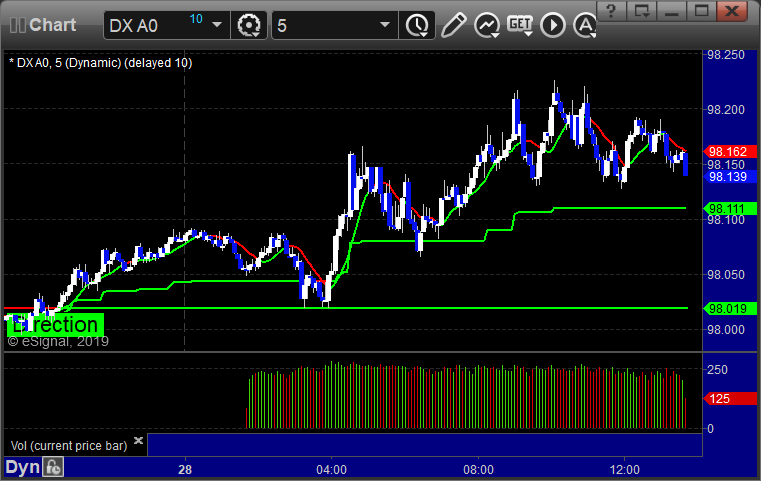 Here’s a look at the US Dollar Index intraday with our market directional lines:
