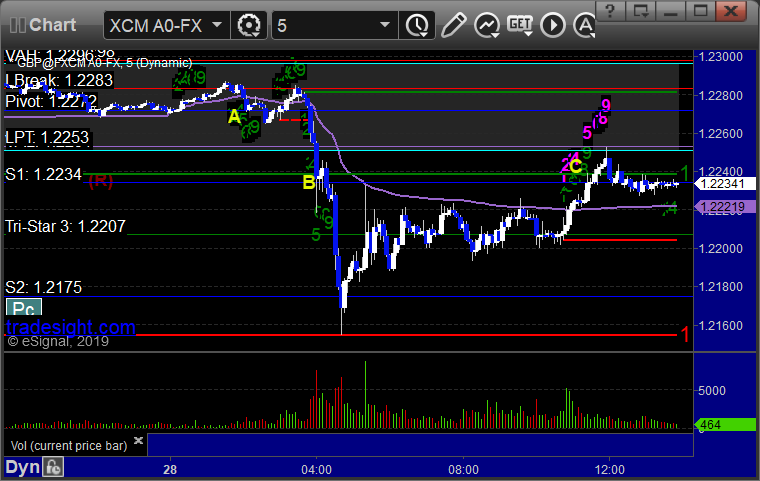 Triggered short at A under the trigger, hit first target at B, stopped second half at C: