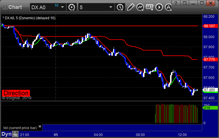 Here’s a look at the US Dollar Index intraday with our market directional lines: