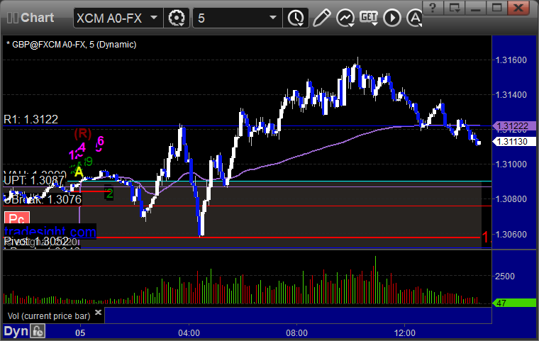 A loser for the session. See GBPUSD section below. Here’s a look at the US Dollar Index intraday with our market directional lines: GBPUSD: Triggered long at A and stopped. Worked later if you were awake to put it back in: PrevNext