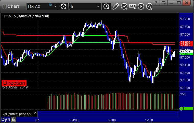 Here’s a look at the US Dollar Index intraday with our market directional lines: