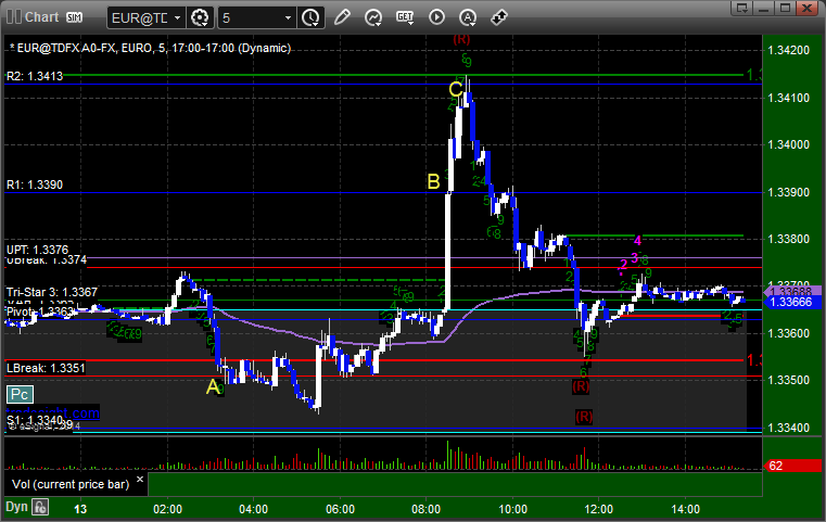 You’d like to think with the spikes that you’ll see in the charts below that we finally got a decent move in the Forex markets, but it’s still just 70 pips of range on the EURUSD. We had a loser and then a winner in the move. See that section below.