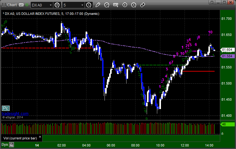 Here’s a look at the US Dollar Index intraday with our market directional lines: