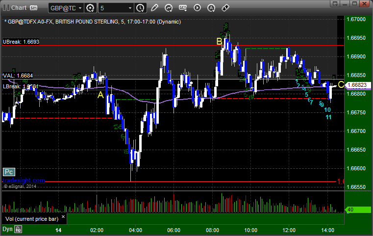 Triggered short at A and stopped. Triggered long at B and closed at C for 10 pips loss at end of session: