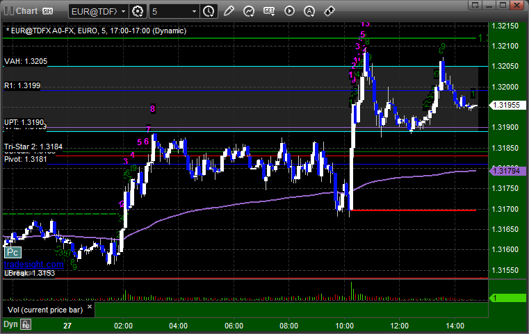 Here’s a look at the US Dollar Index intraday with our market directional lines: