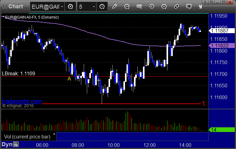 A boring session again. Probably going to be a slow week until Labor Day. Here’s a look at the US Dollar Index intraday with our market directional lines: EURUSD: Triggered short at A and eventually stopped: PrevNext