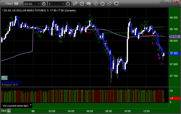 Here’s a look at the US Dollar Index intraday with our market directional lines: