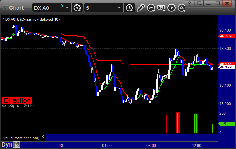 Here’s a look at the US Dollar Index intraday with our market directional lines: