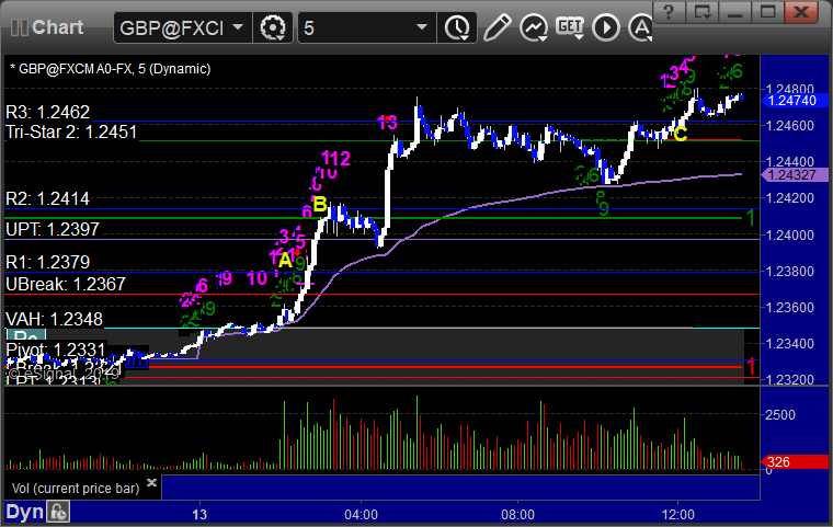 Triggered long at A, hit first target at B, closed second half at C for a nice winner: