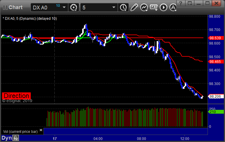 Here’s a look at the US Dollar Index intraday with our market directional lines: