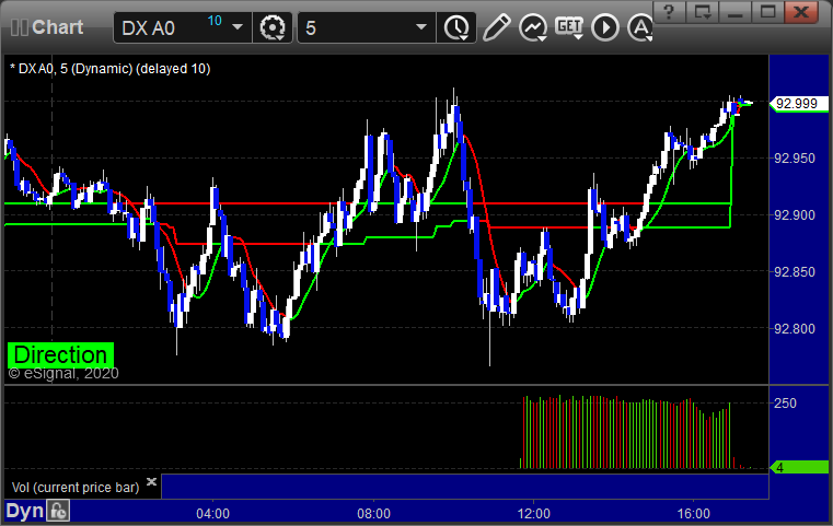 Here’s a look at the US Dollar Index intraday with our market directional lines:
