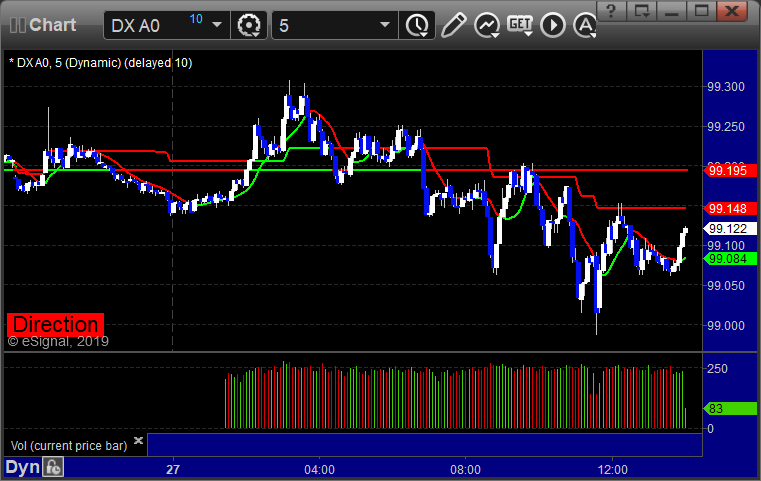 Here’s a look at the US Dollar Index intraday with our market directional lines: