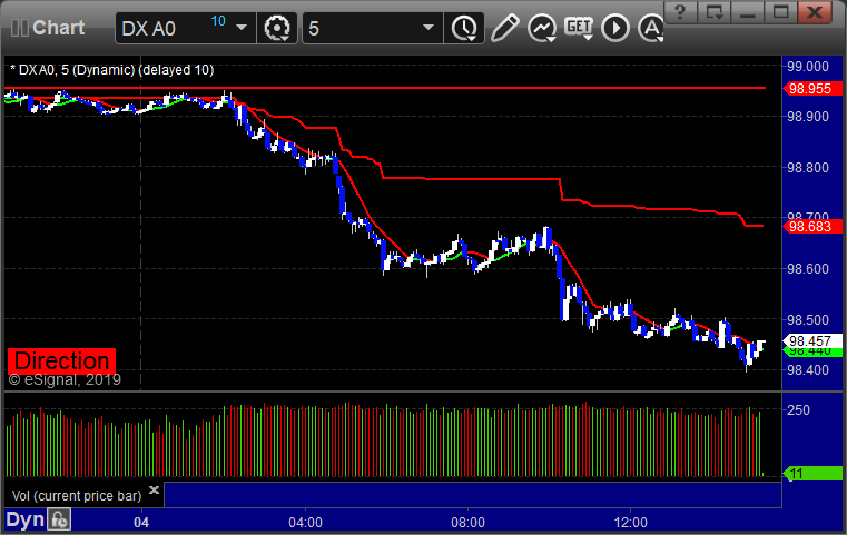 Here’s a look at the US Dollar Index intraday with our market directional lines: