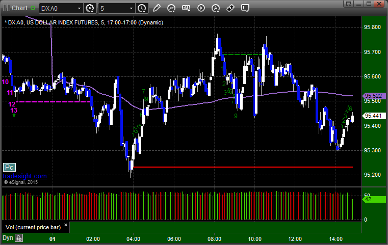 Here’s a look at the US Dollar Index intraday with our market directional lines: