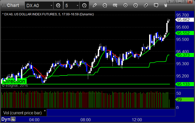 Here’s a look at the US Dollar Index intraday with our market directional lines: