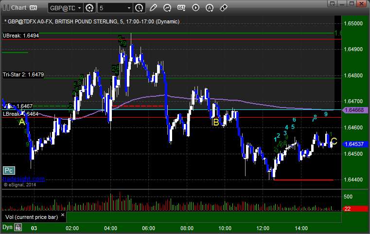 Triggered short at A and stopped. Triggered short again at B, never went far, closed at C for end of session: