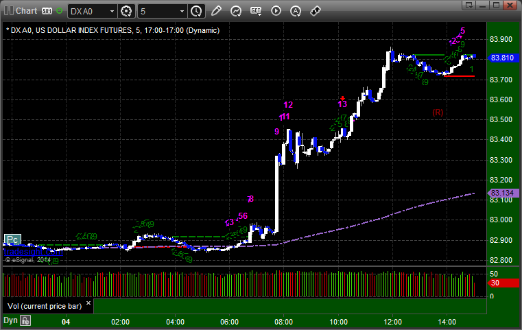 Here’s a look at the US Dollar Index intraday with our market directional lines: