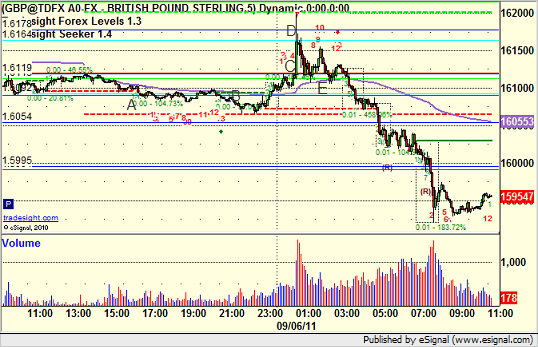 Triggered short at A but gave you hours all the way to B to enter, then stopped. Triggered long perfectly at C then accelerated quickly to first target at D and stopped second half at E. The short triggered again and worked nice, but too early for me to get in: