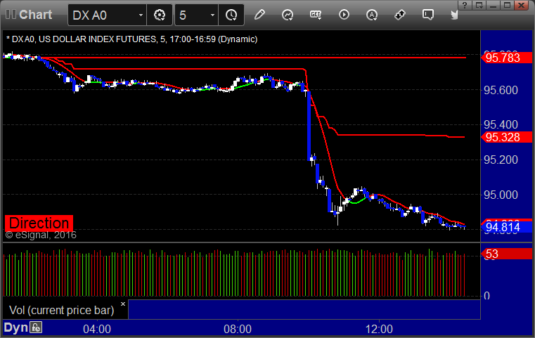 Here’s a look at the US Dollar Index intraday with our market directional lines:
