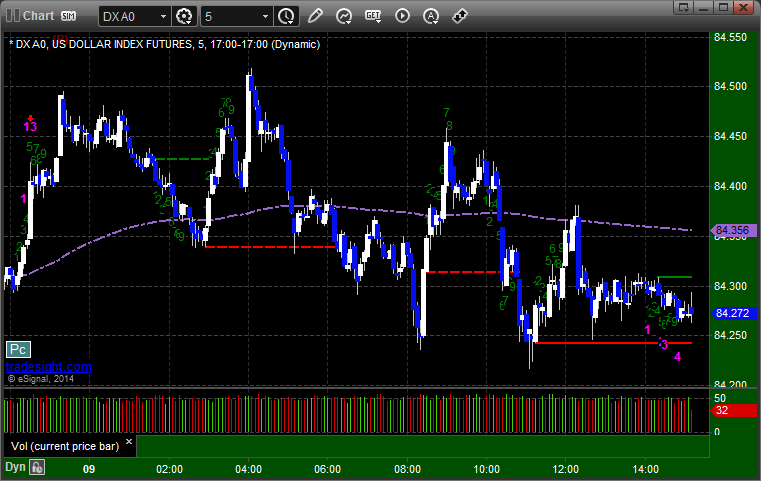 Here’s a look at the US Dollar Index intraday with our market directional lines: