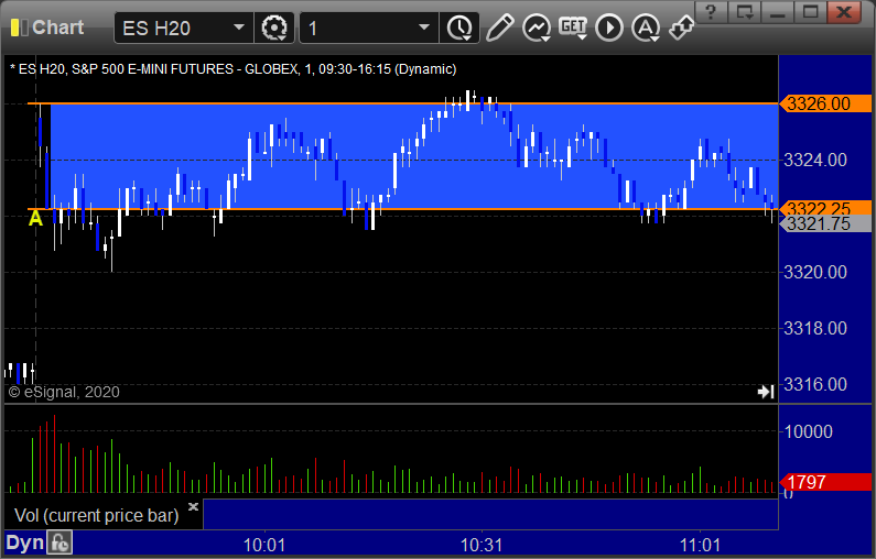 ES Opening Range Play triggered short at A and stopped, although we closed it sooner than the rules in the Lab: