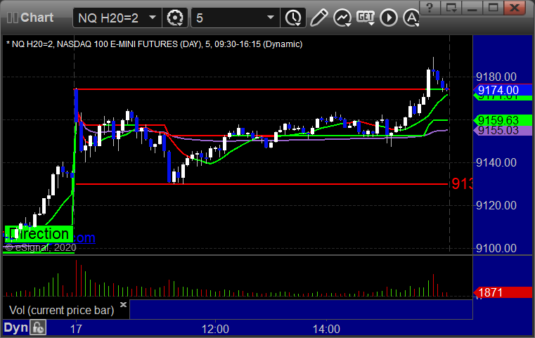As usual, let’s start by taking a look at the ES and NQ with our market directional lines, VWAP, and Comber on the 5-minute chart from today’s session: