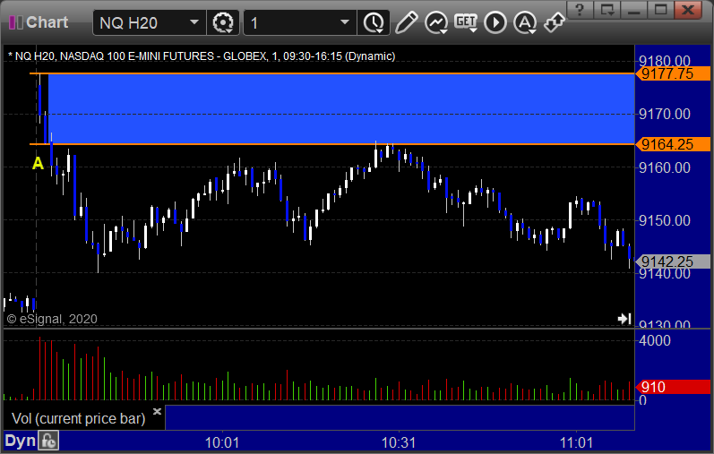 NQ Opening Range Play triggered short at A and worked enough for a partial: