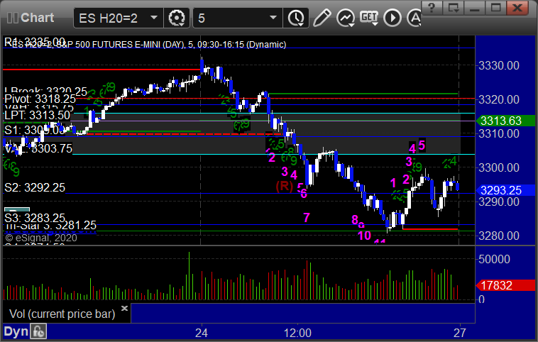 As usual, let’s start by taking a look at the ES and NQ with our market directional lines, VWAP, and Comber on the 5-minute chart from today’s session: