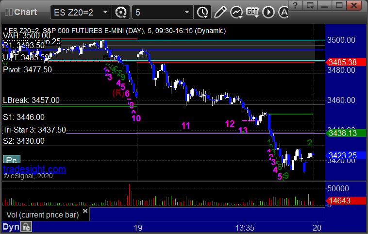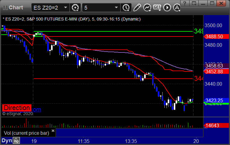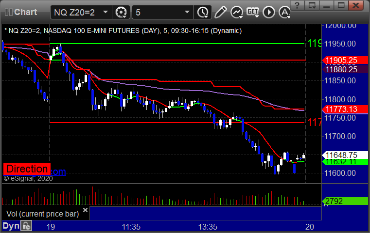 As usual, let’s start by taking a look at the ES and NQ with our market directional lines, VWAP, and Comber on the 5-minute chart from today’s session: