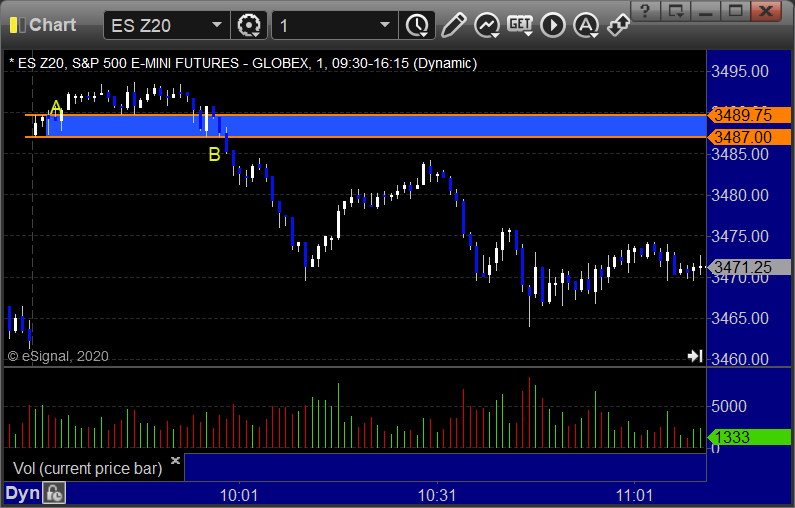 ES Opening Range Play triggered long at A and worked, triggered short at B and worked: