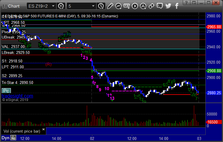 As usual, let’s start by taking a look at the ES and NQ with our market directional lines, VWAP, and Comber on the 5-minute chart from today’s session: