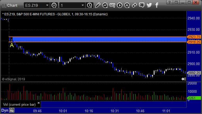 ES Opening Range Play triggered short at A and worked: