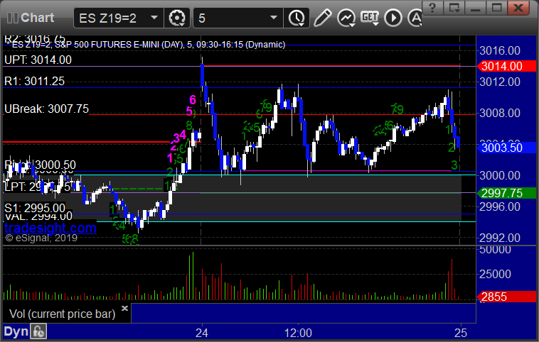 As usual, let’s start by taking a look at the ES and NQ with our market directional lines, VWAP, and Comber on the 5-minute chart from today’s session: