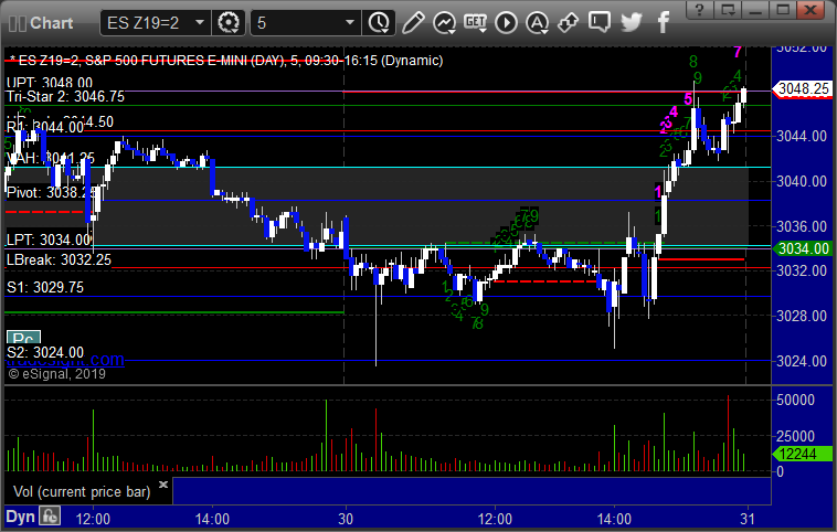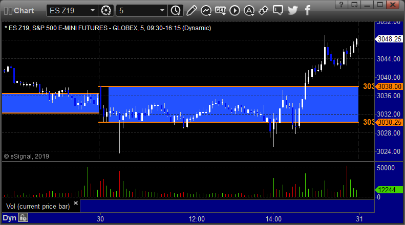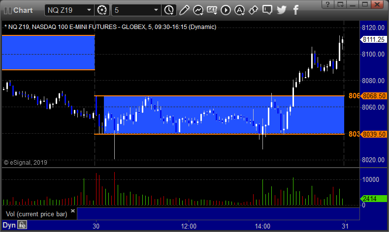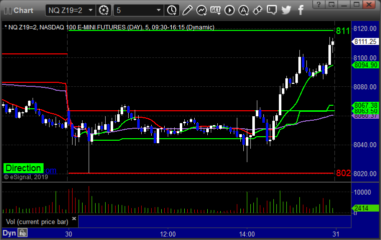 As usual, let’s start by taking a look at the ES and NQ with our market directional lines, VWAP, and Comber on the 5-minute chart from today’s session: