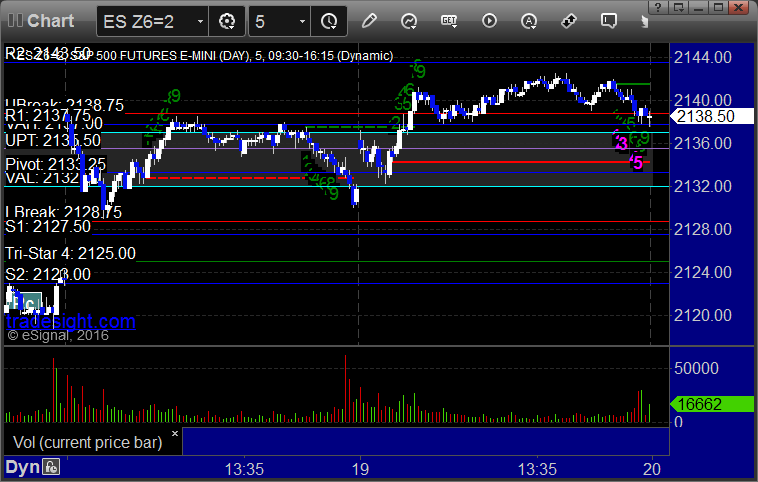 As usual, let’s start by taking a look at the ES and NQ with our market directional lines, VWAP, and Comber on the 5-minute chart from today’s session: