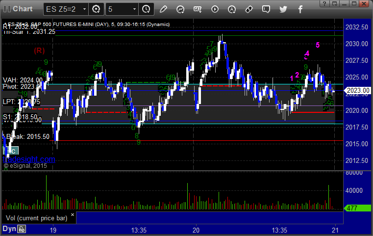 As usual, let’s start by taking a look at the ES and NQ with our market directional lines, VWAP, and Comber on the 5-minute chart from today’s session: